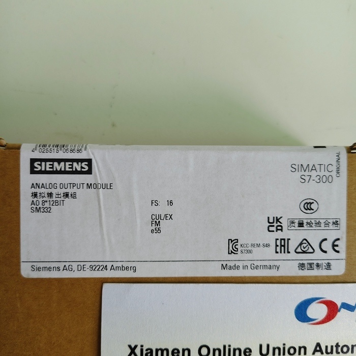 The SIEMENS 6ES7332-5HF00-0AB0 is an analog output module from the SIMATIC S7-300 series of programmable logic controllers. This module is designed to interface the S7-300 PLC with analog actuators in an industrial automation system. Its primary function is to convert the digital control signals generated by the CPU into precise analog output signals, typically used to control devices such as proportional valves, frequency converters, electric actuators, or analog displays.