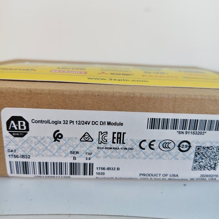 The Allen Bradley 1756-IB32 is a high-density digital input module from Rockwell Automation's ControlLogix® 5000 series, designed for industrial automation systems. It provides 32 channels of 24V DC digital inputs to interface with field devices like pushbuttons, limit switches, proximity sensors, and relay contacts. As part of the ControlLogix platform, it supports modular scalability, channel-level diagnostics, and seamless integration with Rockwell's controllers and software.